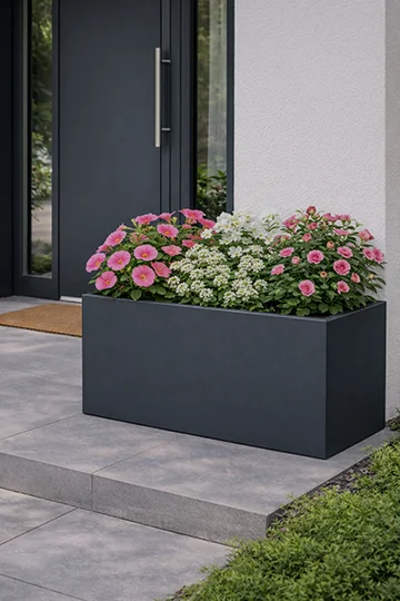 Odkrijte visokokakovostna kovinska cvetlična korita, izdelana iz pocinkane pločevine in prašno barvana za dolgo življenjsko dobo. Primerna za vrt, teraso, balkon ali vhod – odporna na dež, sneg, sonce in rjo.