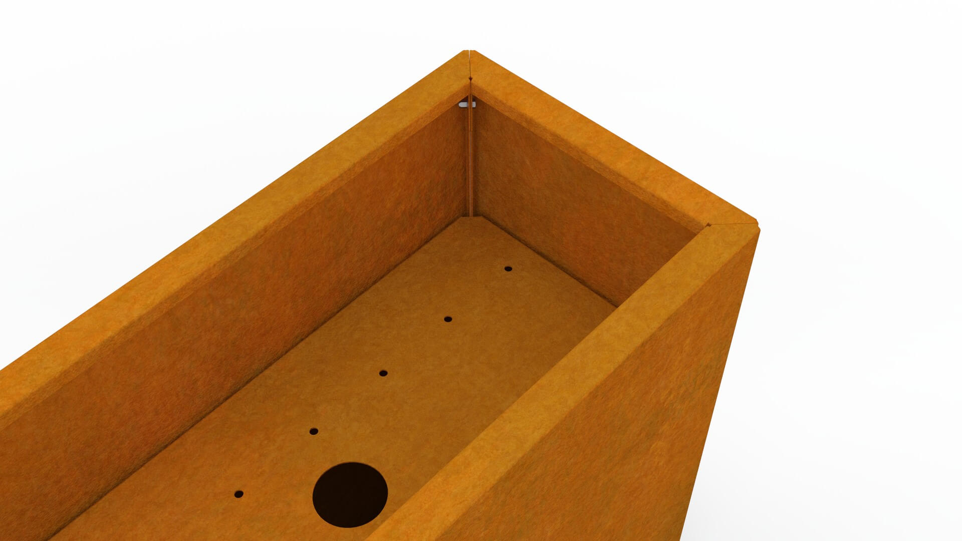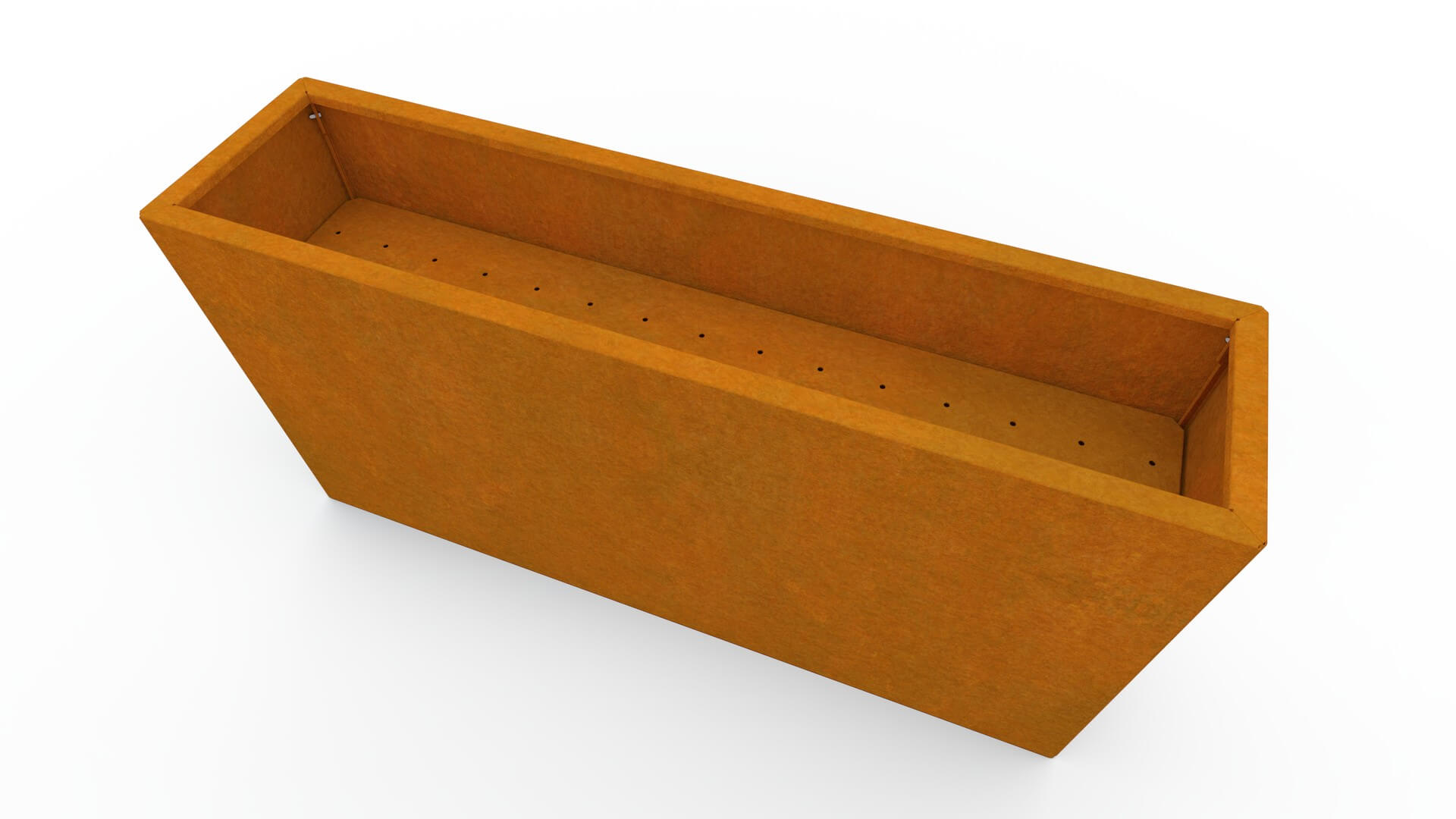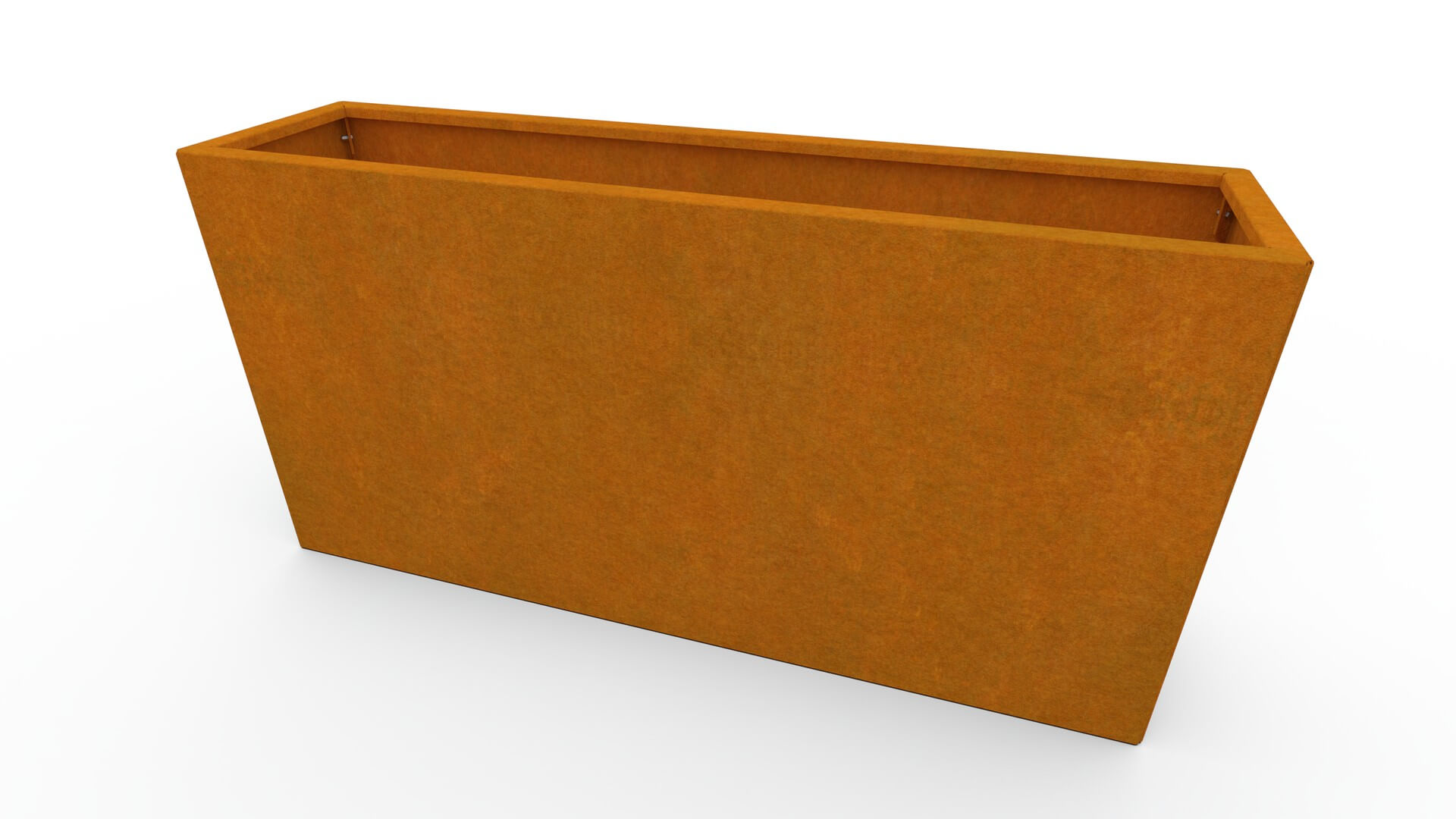 Cvetlično korito je izdelano iz visokokakovostnega 1,5 mm debelega corten jekla, znanega po izjemni odpornosti in dolgi življenjski dobi. Corten sčasoma razvije naravno rjavkasto patino, ki mu daje prepoznaven, moderen videz. Patina nastaja postopoma in omogoča, da je korito obstojno v vseh vremenskih razmerah, brez potrebe po barvanju ali dodatnem vzdrževanju.