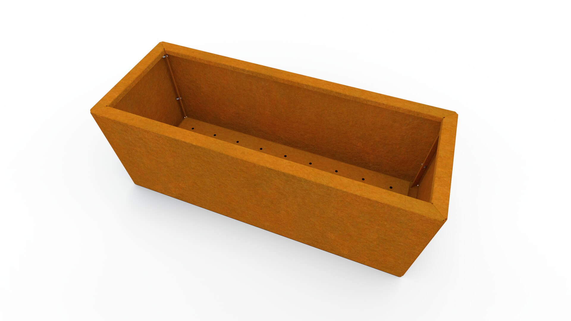 Cvetlično korito je izdelano iz visokokakovostnega 1,5 mm debelega corten jekla, znanega po izjemni odpornosti in dolgi življenjski dobi. Corten sčasoma razvije naravno rjavkasto patino, ki mu daje prepoznaven, moderen videz. Patina nastaja postopoma in omogoča, da je korito obstojno v vseh vremenskih razmerah, brez potrebe po barvanju ali dodatnem vzdrževanju.
