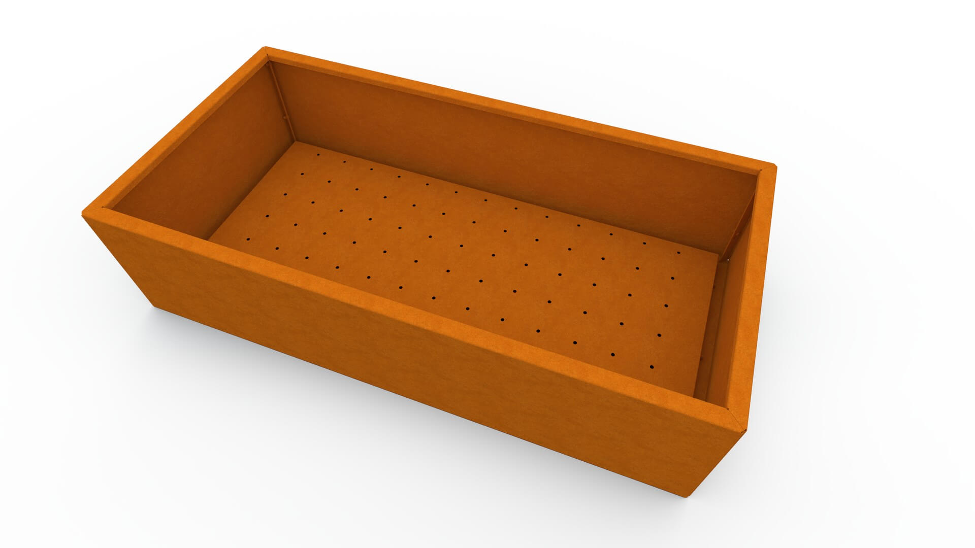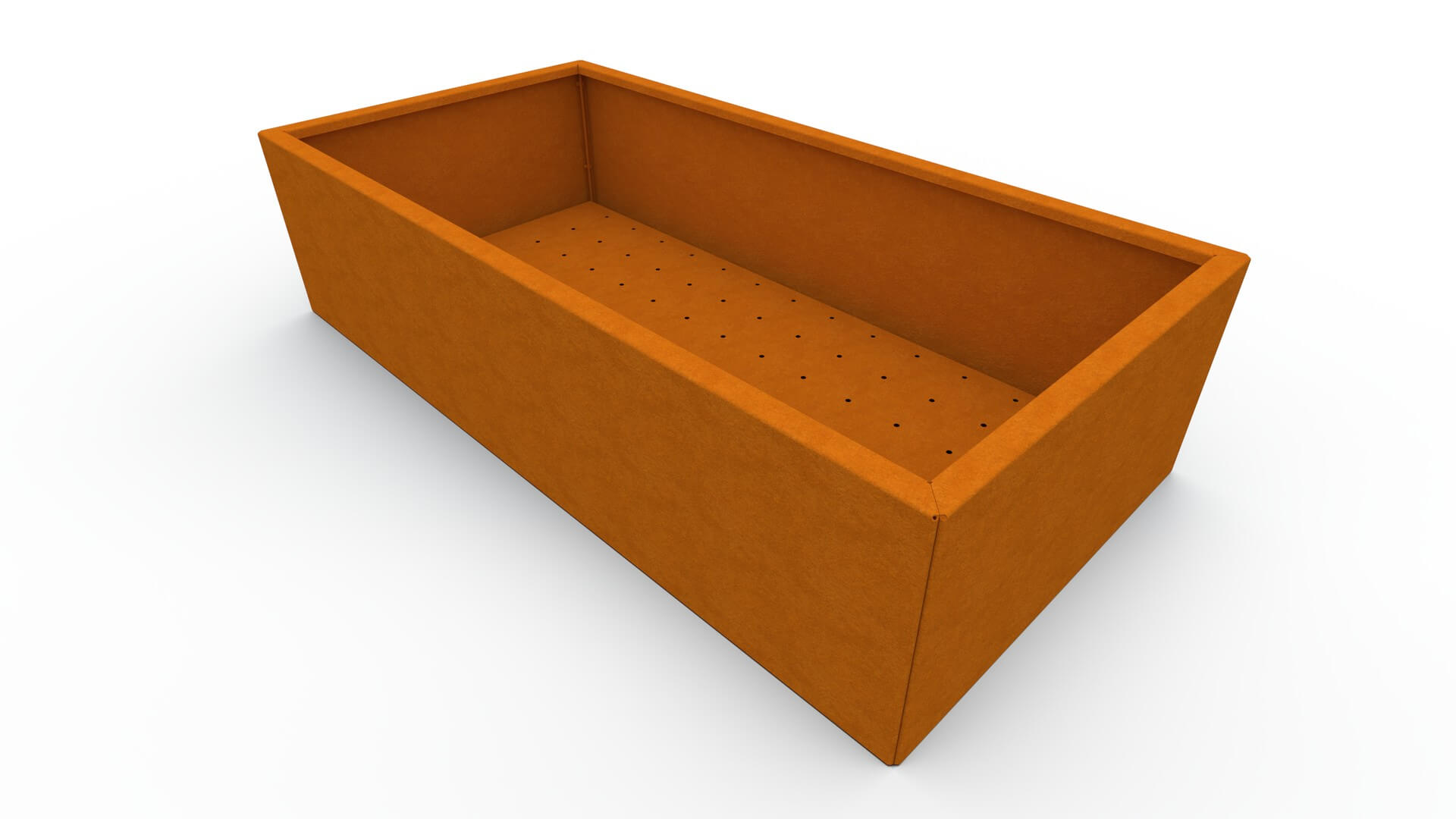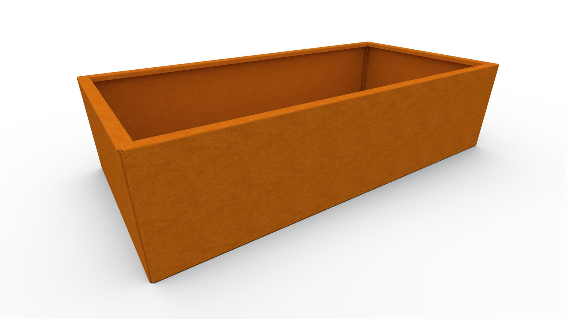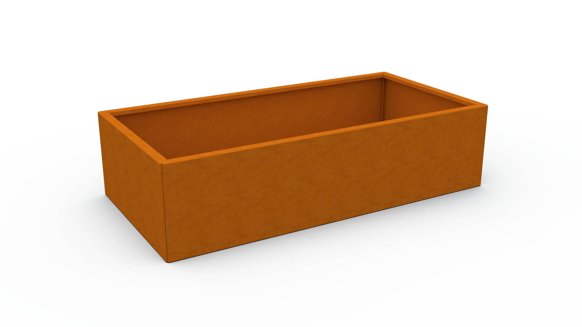 Cvetlično korito je izdelano iz visokokakovostnega 1,5 mm debelega corten jekla, znanega po izjemni odpornosti in dolgi življenjski dobi. Corten sčasoma razvije naravno rjavkasto patino, ki mu daje prepoznaven, moderen videz. Patina nastaja postopoma in omogoča, da je korito obstojno v vseh vremenskih razmerah, brez potrebe po barvanju ali dodatnem vzdrževanju.