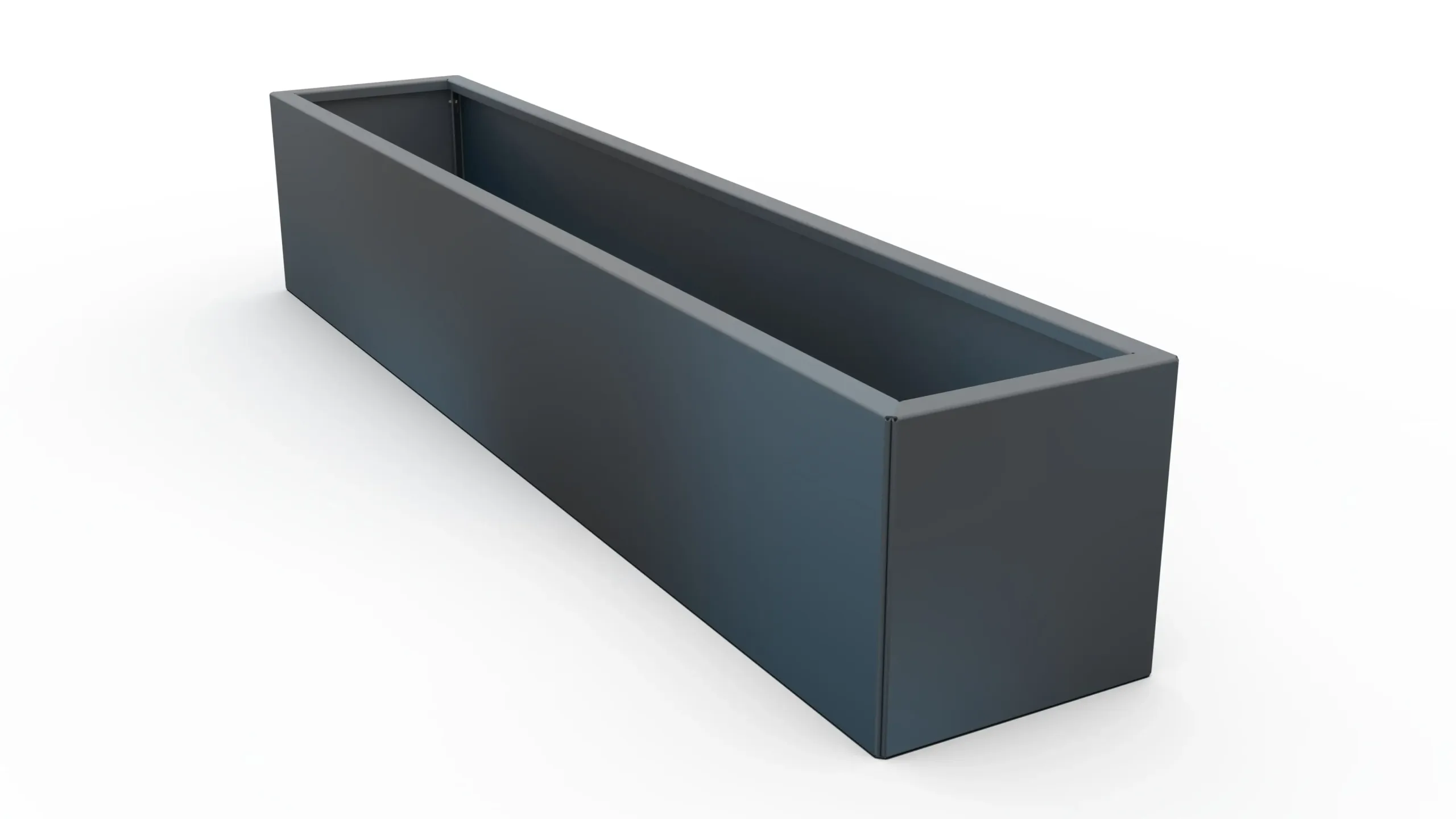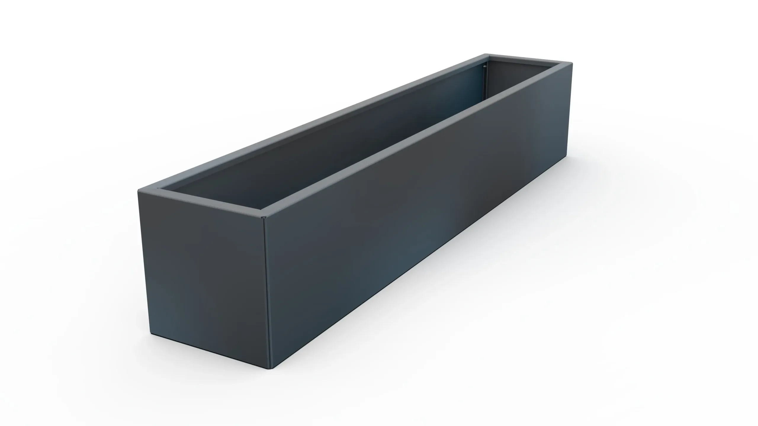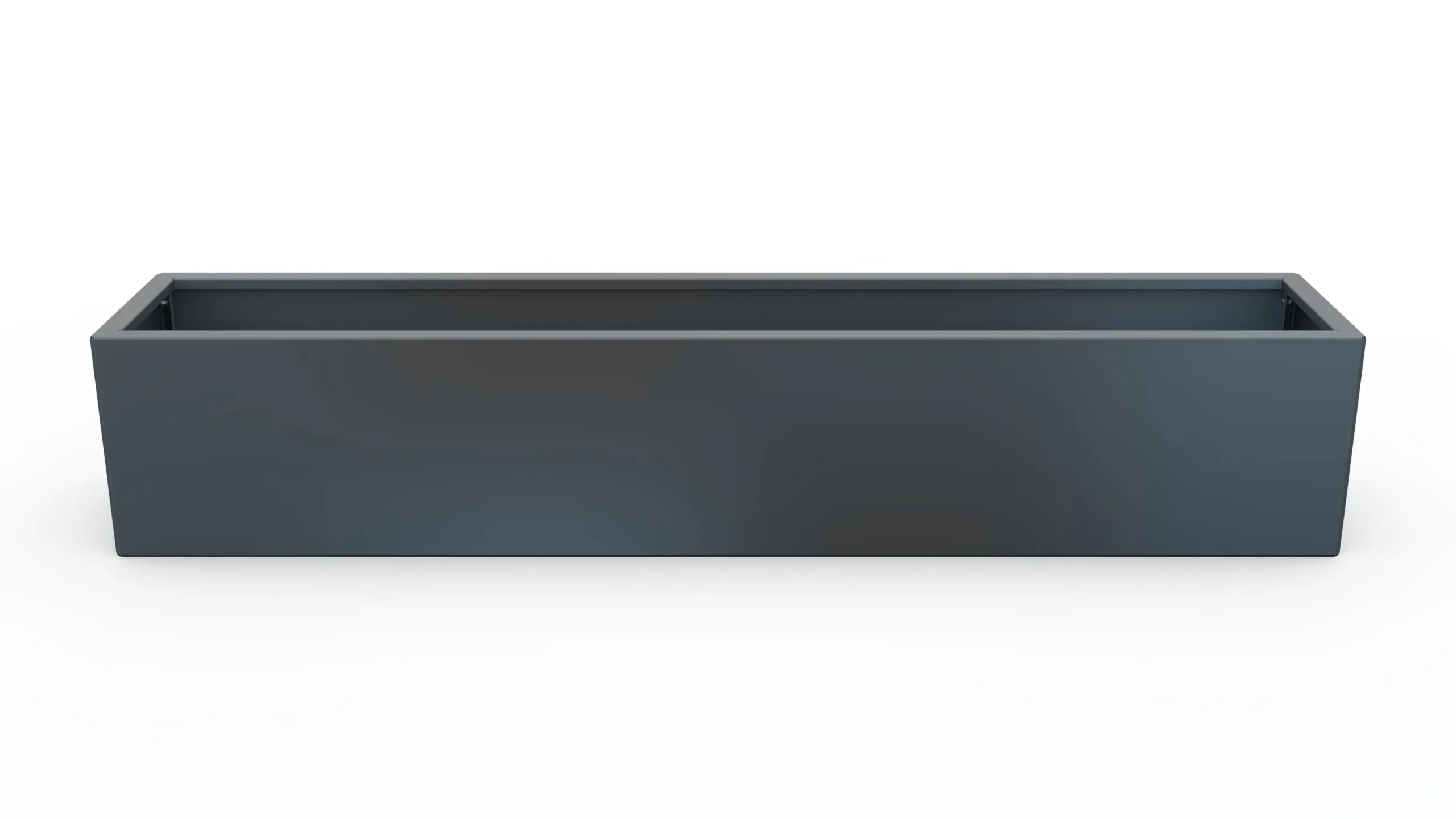 Cvetlično korito je izdelano iz visokokakovostne 1,5 mm debele pocinkane pločevine, kar zagotavlja odlično odpornost proti koroziji in dolgo življenjsko dobo. Površina je barvana z UV-odporno in vodoodporno barvo v odtenku RAL 7016 FS (antracitno siva), ki zagotavlja moderen in eleganten videz ter dodatno zaščito pred vremenskimi vplivi.