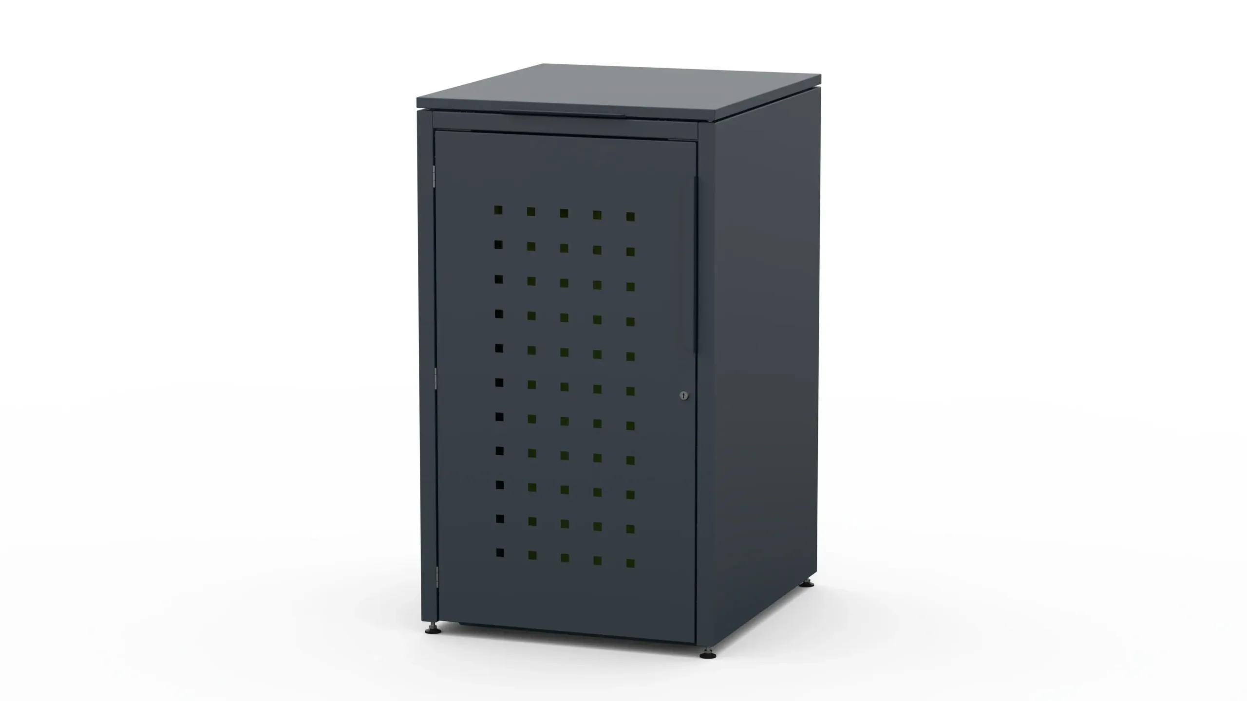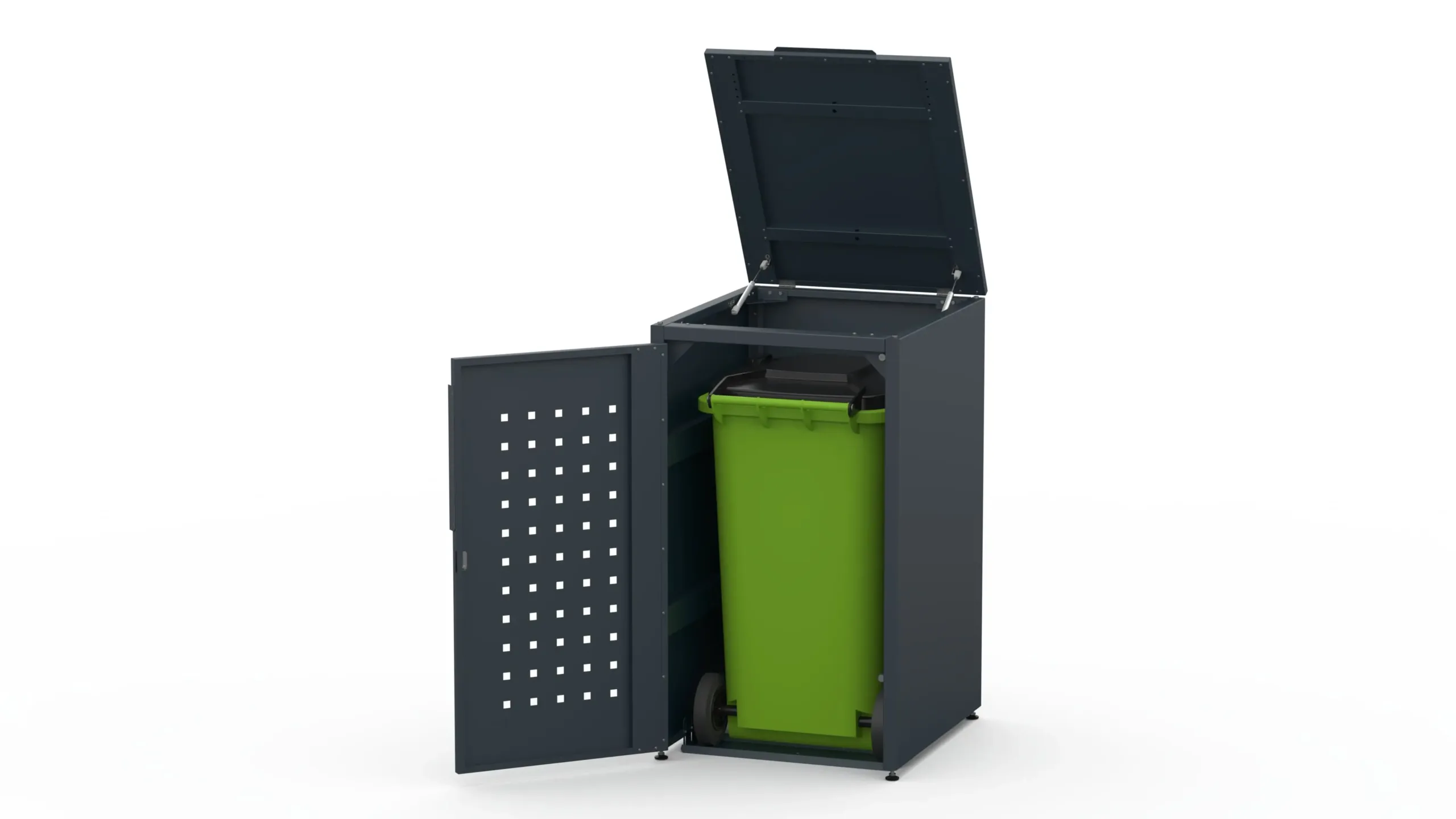 Enojni smetarnik Flamula je praktičen in premišljeno zasnovan izdelek, za shranjevanje enega 240-litrskega zabojnika za smeti. Izdelan je iz kakovostne pocinkane pločevine, debeline 1,5 mm in je odporen proti koroziji, vlagi in mehanskim poškodbam. Dodatno je prašno barvan v elegantno antracit barvi (RAL 7016 FS s fino strukturo), ki nudi odlično zaščito pred UV žarki, praskami in vremenskimi vplivi. Takšna obdelava zagotavlja, da smetarnik tudi po več letih ostane vizualno privlačen in brez rje – ne glede na to, ali je izpostavljen soncu, dežju ali snegu.